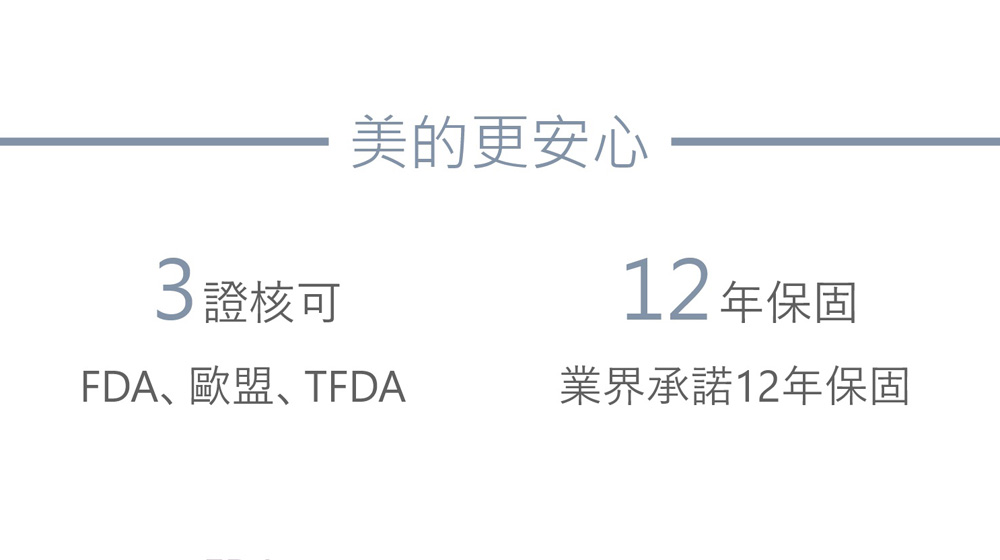 女王波原廠提供長達12年的假體保固,且經過美國FDA、歐盟CE及台灣TFDA的三方認證。